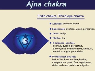 When it’s blocked: If your lower chakras are unbalanced, the third-eye will most likely be as well. You may have trouble tapping into your intuition or not trusting it if you do. You could end up acting more judgmental, dismissive, and even introverted often with feelings of anxiety and depression. On a physical level it can be associated with issues such as headaches, dizziness, vision problems, memory issues, or other brain health issues.